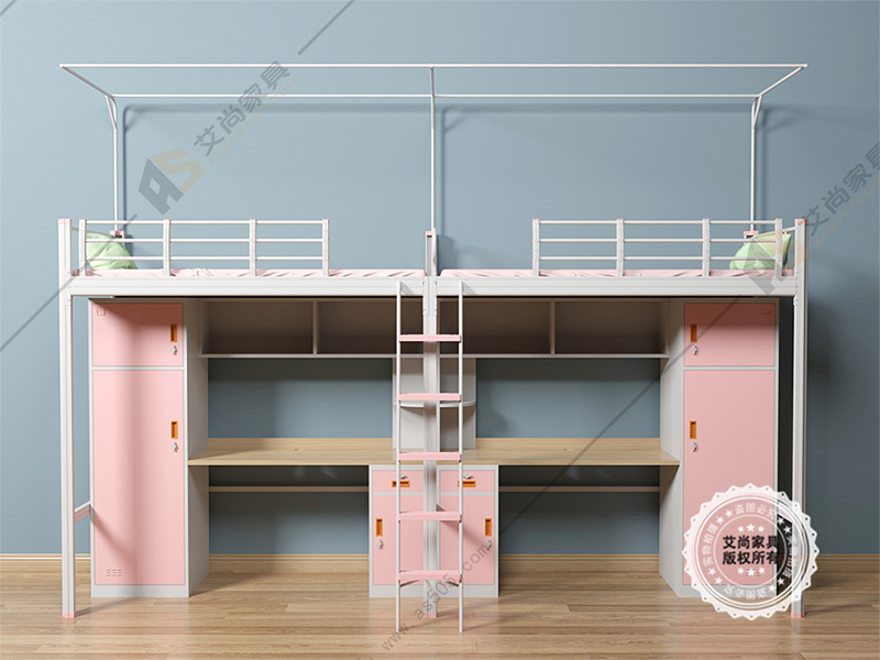 粉色少女心系列,這款學(xué)生公寓床是專為女學(xué)生而設(shè)計,采用粉色為主色調(diào),深得校園女生喜愛,適用大學(xué)、四人間-6人間宿舍