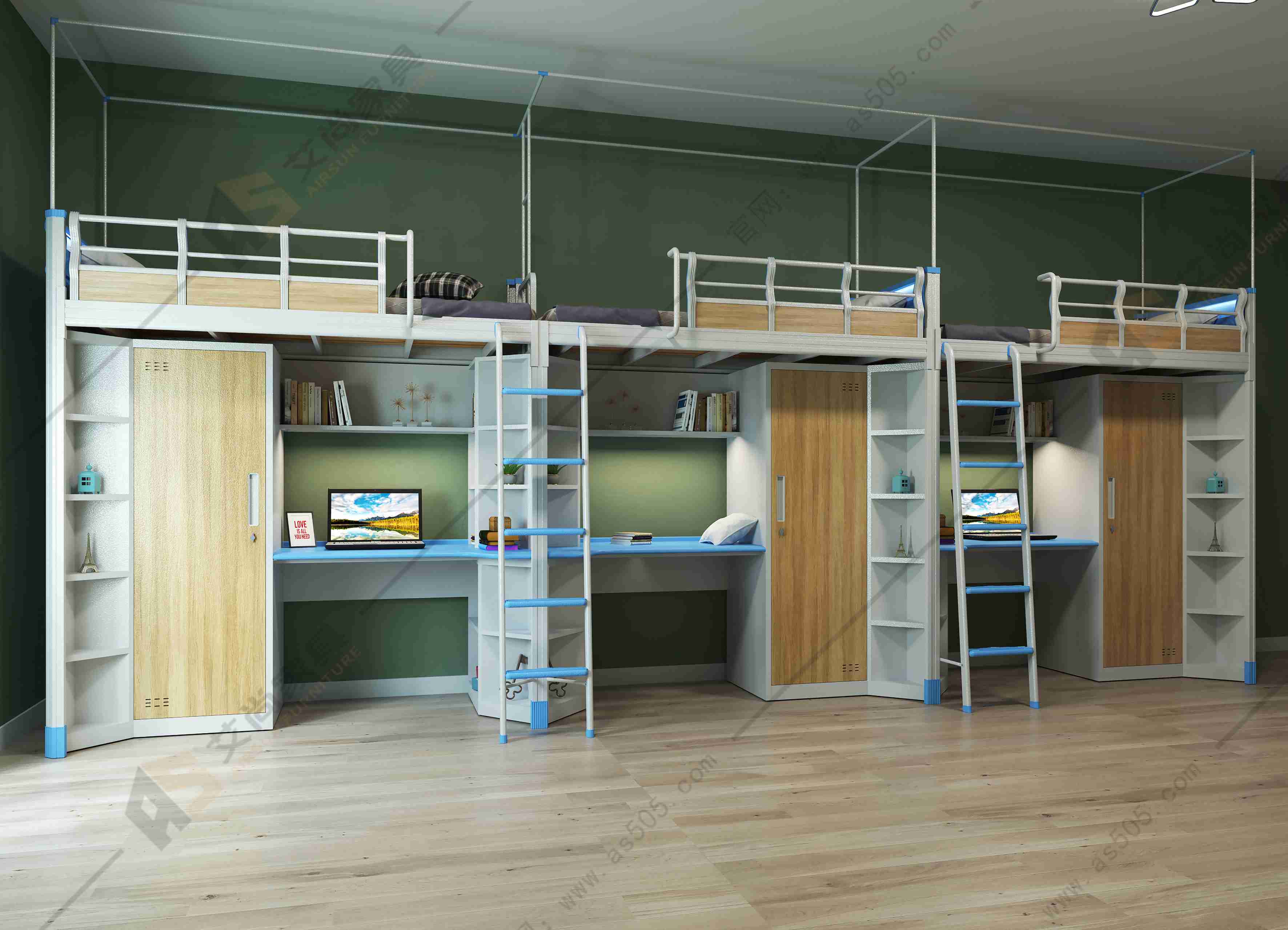 大學(xué)生宿舍公寓床能夠廣泛運(yùn)用于學(xué)校、企事單位、單身公寓、青年旅館等場所,床和櫥柜是組合式,包括床、書桌、衣柜、儲藏柜等,空間利用率大的宿舍家具,不僅節(jié)省空間,而且美觀實用。