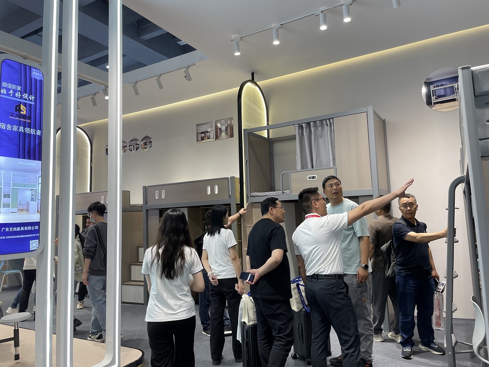 展會(huì)期間,艾尚家具的展館始終人潮涌動(dòng),熱鬧非凡。其中,宿舍公寓床系列新品尤為引人注目。
